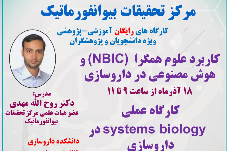-کاربرد علوم همگرا (NBIC) و هوش مصنوعی در داروسازی- 18 آذر ساعت 9 تا 11- دانشکده داروسازی- تالار ابوریحان